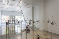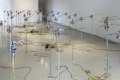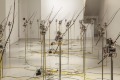 The 50 twigs in this installation point in unison in the direction of the oldest piece of human-made space debris currently above the horizon. The debris being tracked is comprised of spent rocket bodies, parts from defunct satellites, and wayward tools launched in missions as far back as 1958. When the piece of debris being tracked drops below the installation's horizon, the twigs go to a rested downward pointing position and await the next debris to appear. The composition is continually changing as it tracks the oldest discarded objects orbiting the earth that enter its point of view.