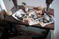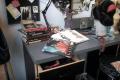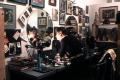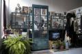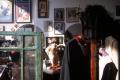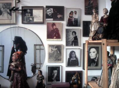 working studio/ wig and make-up, wax dolls, mannequin, puppet, client photos, vintage clothes, opera costume drawings, found objects and personal art, magic of theater and real life