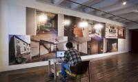 Photograph depicting the creation of Seamus Nolan's installation titled