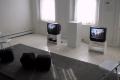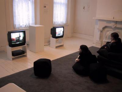 Digital image IRC.2013.00881 showing John Smith's video performance of David Sedaris's play, A Walk through Destiny's Plaything, at the Mattress Factory, 2002.