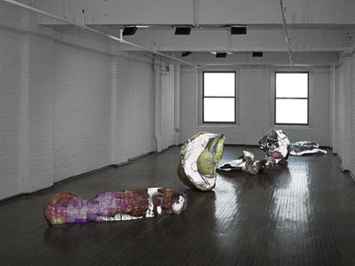 Exploiting an algorithmic system in order to extract these shapes/ghost images, Meerdo has devised a way to repurpose a 3D modeling technique known as photogrammetry - typically used to produce 3D models from still images. The data he has extracted are blip images, noise frequencies, null data that doesn't translate into linear knowledge, but instead a tangled mess of spaces. Turning this data into 3D models, Meerdo has then hydroprinted on top of the sculptures' surface. Images of global protests and state police force atmospheres include tear gas, flare deterrents, and pepper spray, which become abstracted into light and color. These sculptural shapes, based on images and traces, bear witness to the space in between the violator and the law, reminding us of Kafka's famous aphorism Before the Law, where the narrator stands before a physical threshold awaiting judgement. Of course, these phantom images also resurrect visual traces of black bodies, which circulate the media like chimeras, never receiving a trial, yet having been executed without a democratic judgement. -Vanessa Gravenor