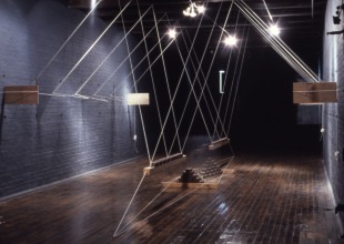 Since people tend to believe a photograph, I presented photo documents of 44 fictitious installations and performances that 'occurred' at the Mattress Factory. I photographed the galleries, empty, 'installed' objects and other photos onto the prints of the empty galleries, then photographed these 'installations.' I then exhibited the portfolio of bogus installations in the same galleries that I originally photographed empty.