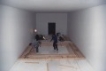You approach the gallery through an inclined corridor so dark that you are virtually without sight. At the top of the ramp, you sit in a chair and face blackness. After your eyes adjust, an amorphous sphere of grey-white, or perhaps red, begins to appear, more a presence than an object. As you look harder, the form becomes smaller. You turn away for a moment and back again. It grows and glimmers. But the source of light itself is constant and still.