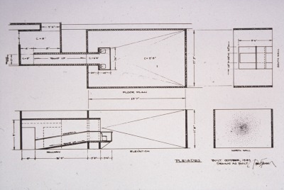 Pleiades is a Dark Piece where the realm of night vision touches the realm of eyes-closed vision, where the space generated is substantially different than the physical confines and is not dependent upon it, where the seeing that comes from 'out there' merges with the seeing that comes from 'in here,' where the seeing develops over and through dark adaptation but continues beyond it. It is the first piece in a series of works. While it relates to the last piece of the Mendota Stoppages, 1969-70, in that it develops over time, it is definitely a departure in that after the seeing develops, it is no longer static. The thing that gave me the idea to do this was the fact that I needed to work with very low levels of light for the night seeing in the crater piece. The last time that I had really worked in that arena was with the Mendota Stoppages where I had some very dark pieces that took a long time of dark adaptation, sometimes as much as fifteen minutes. When you actually had that seeing, though, the space that was generated was a static space – you saw it and could walk in it, but it didn't change. In this work, what is generated in you and what is actually out there become a little more equal.