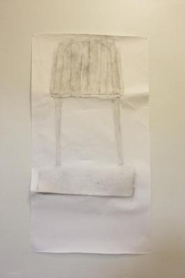 Over the course of several days, I felt my way through Winifred Lutz’s Garden here at the Mattress Factory. While wearing work gloves, I ran my hands over the brick, stone, concrete, rusted metal, boulders, crevices, grasses, trees, and other plants. I also made rubbings of 2 sitting places in the Garden. I covered both the chair and the boulder in paper, then, burnished the paper with my hands and a spoon, forming the paper to each object. I used a pencil and a soft cloth to spread the graphite, making the underlying textures visible. Both the gloves and the paper absorb and record my experience of the space. The surfaces are transferred to the paper and gloves, in all their irregularities and history. My interest is in how drawing can acknowledge the residual effects of everyday activities while offering a set of parallel sensations. I want to imagine mark making (and art in general) as something that happens as a result of how I take in the world around me.