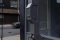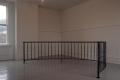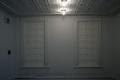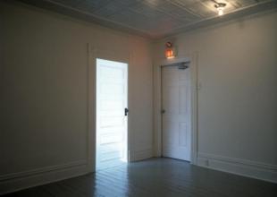 On the 2nd floor, a cast resin door appears to provide entry to a gallery, but it does not open. The door, constructed in a manner that suits the architecture, permits natural light from the windows in a closed-off gallery. Windows in the accessible gallery are covered with foam core that repeats the pattern of the tin ceiling.