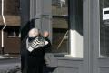 Six artists worked together on all parts of this installation. Their work begins outside on the sidewalk.