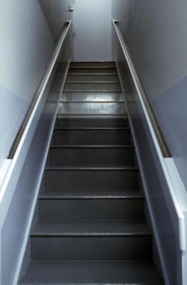On the stairwell between the 2nd and 3rd floors is a handrail with water circulating through it.