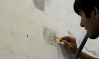 Kim Beck grew up in Colorado and now lives in Pittsburgh where she works and teaches at Carnegie Mellon University. Beck works in a range of media such as drawing, print and installation to survey architecture and landscape. Meditations on weeded lots, street signs, gas station banners, pieces of lawn and sidewalk urge a reconsideration of the built environment, bringing the banal and everyday into focus.